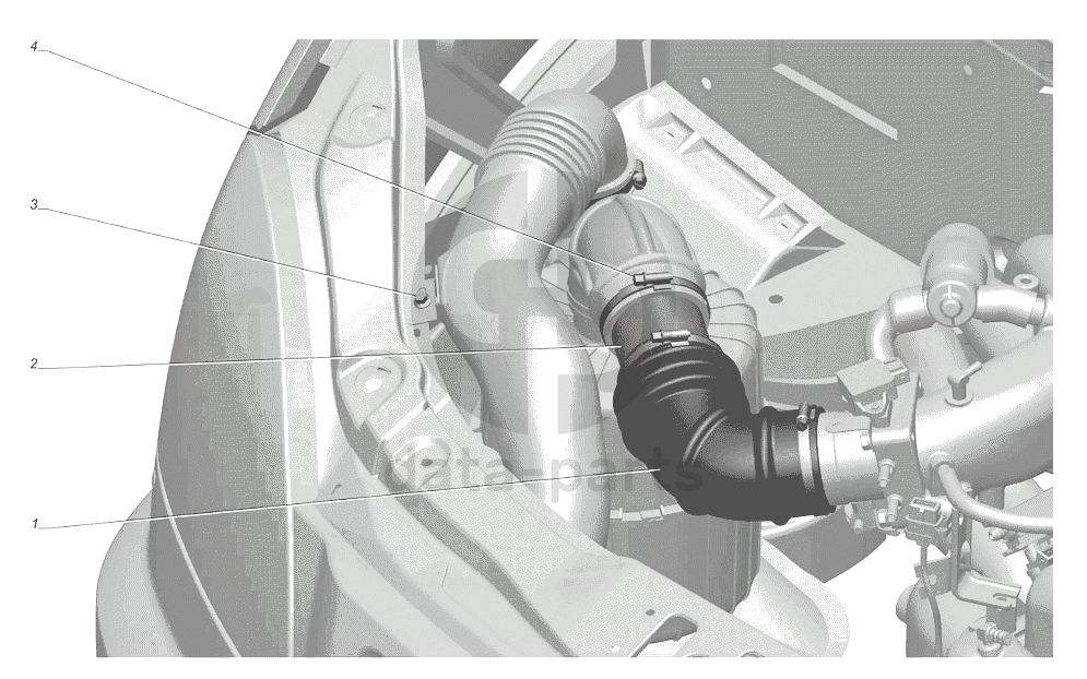 33023-1109001-10. Установка воздуховода воздушного фильтра ГАЗ-3302 (с двиг. УМЗ)