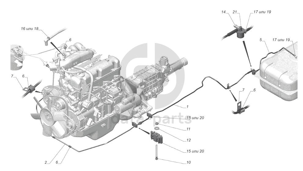 3302-1164001-60. Установка паропроводов ГАЗ-3302 (с двиг. УМЗ)