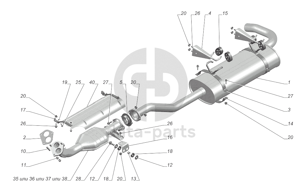3302-1200001-110. Установка системы выпуска газов ГАЗ-3302 (с двиг. УМЗ)