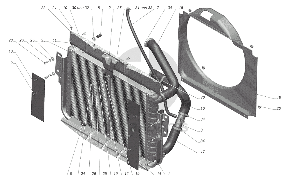 33027-1300001. Установка системы охлаждения ГАЗ-3302 (с двиг. УМЗ)