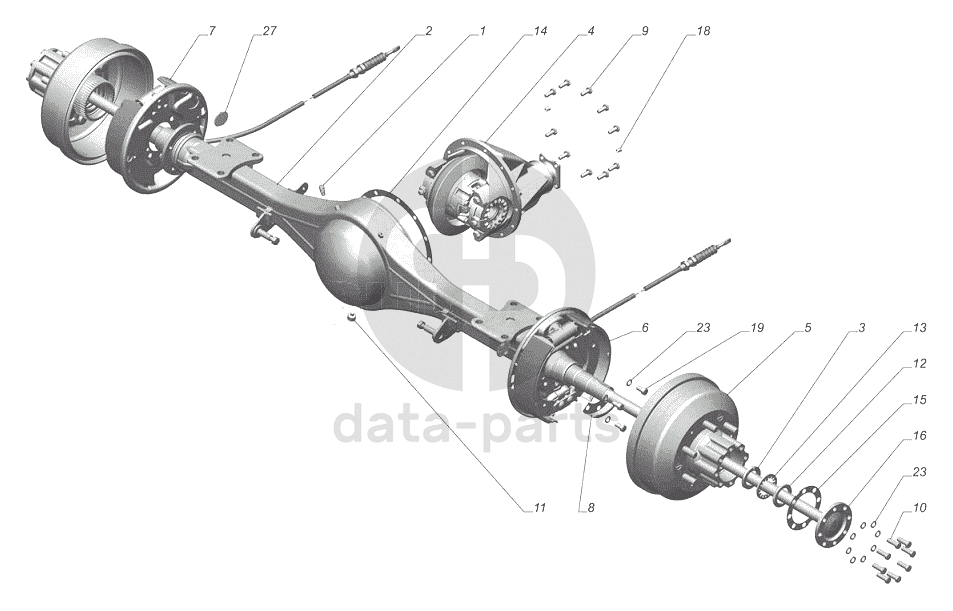 3302-2400012-50. Мост задний с тормозами и ступицами ГАЗ-3302 (с двиг. УМЗ)