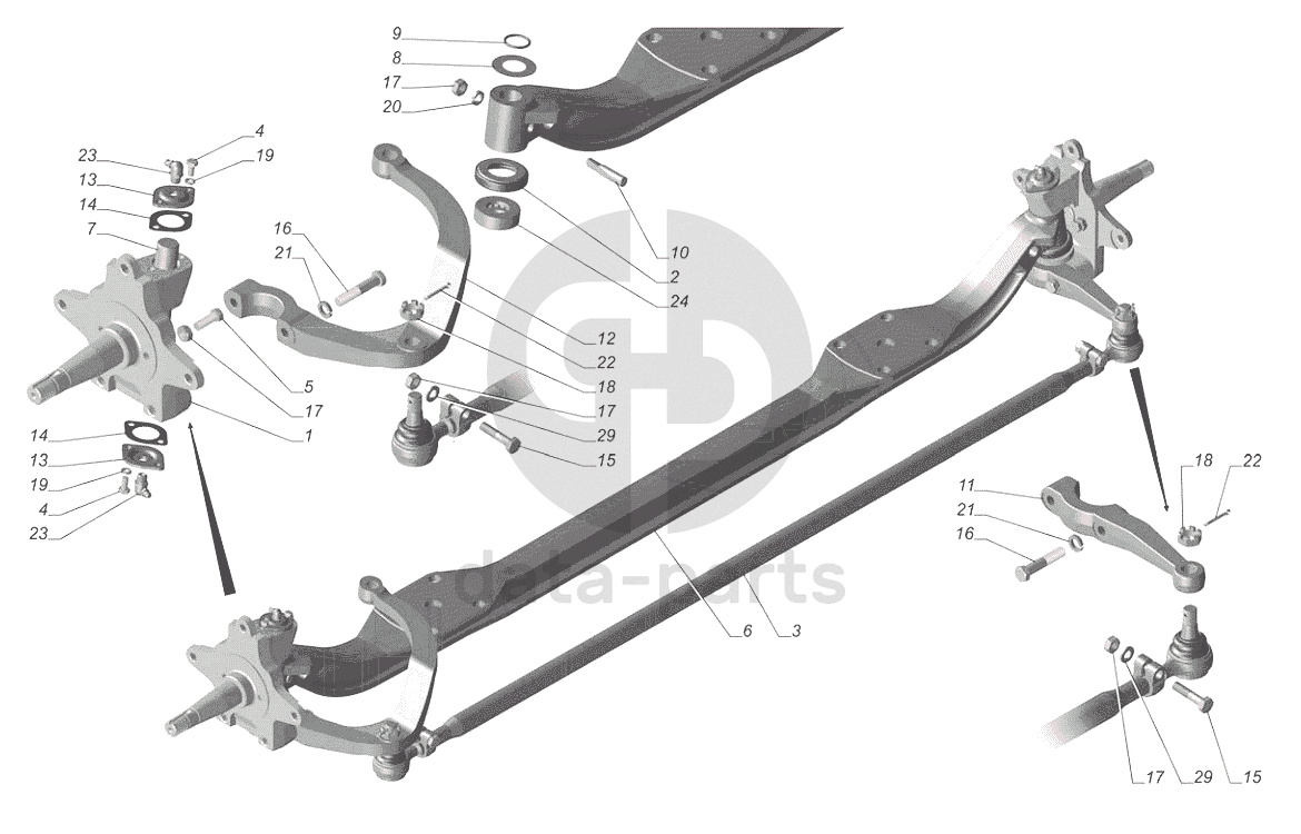 3302-3000015. Ось передняя ГАЗ-3302 (с двиг. УМЗ)