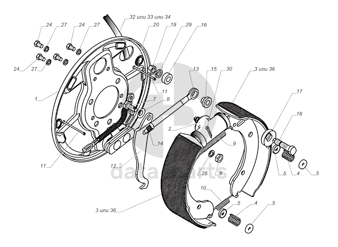 3302-3502008. Тормоз задний с тросом правый ГАЗ-3302 (с двиг. УМЗ)