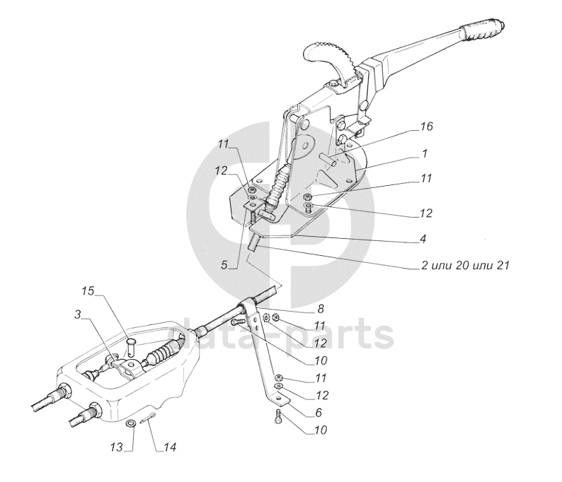 3302-3508001. Установка привода стояночного тормоза ГАЗ-3302 (с двиг. УМЗ)