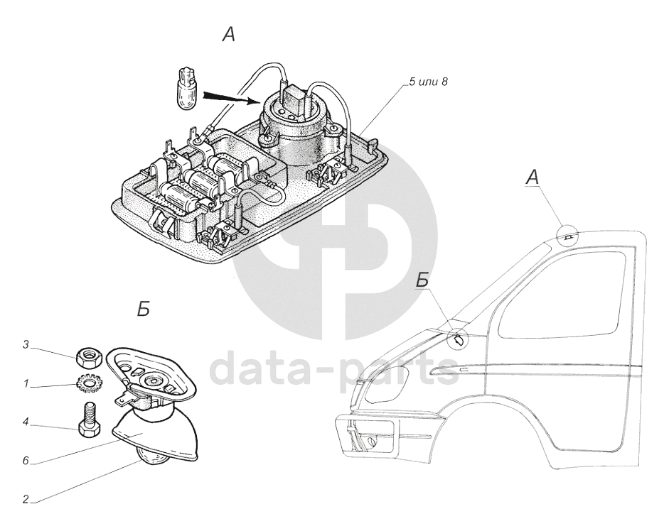 3302-3715002. Установка подкапотной лампы и плафона ГАЗ-3302 (с двиг. УМЗ)