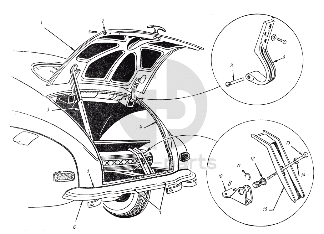 Детали задка. Задняя дверь. Окно задка М20 Победа