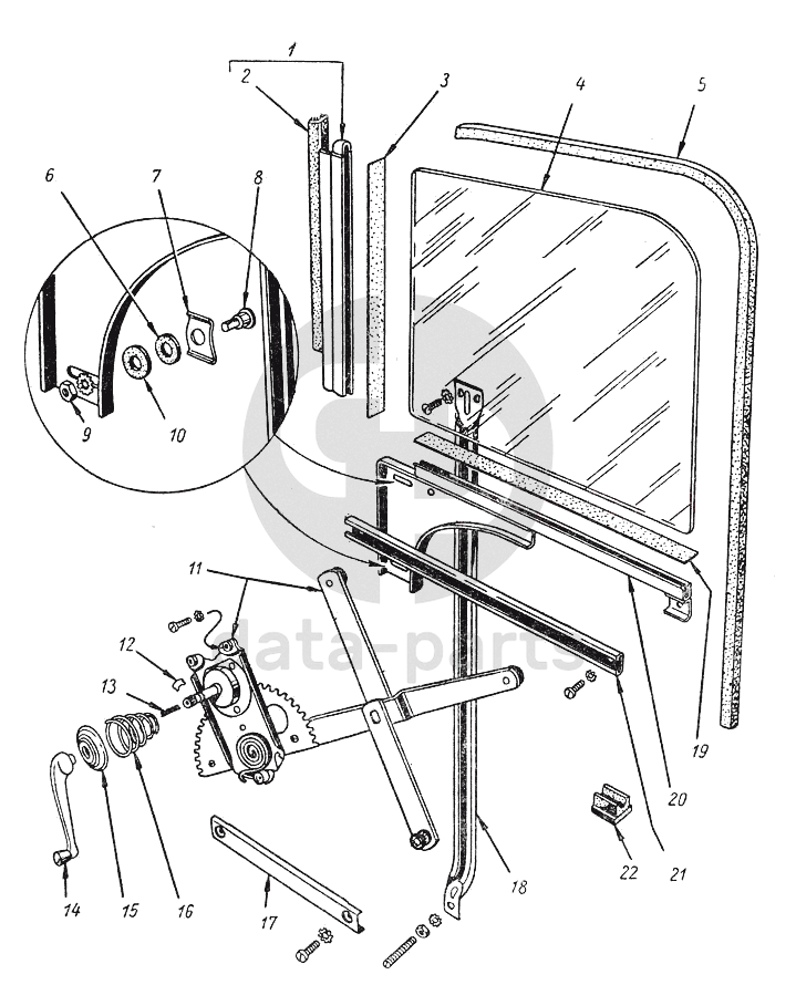 Стойка опускного стекла передней двери правая с уплотнителем в сборе