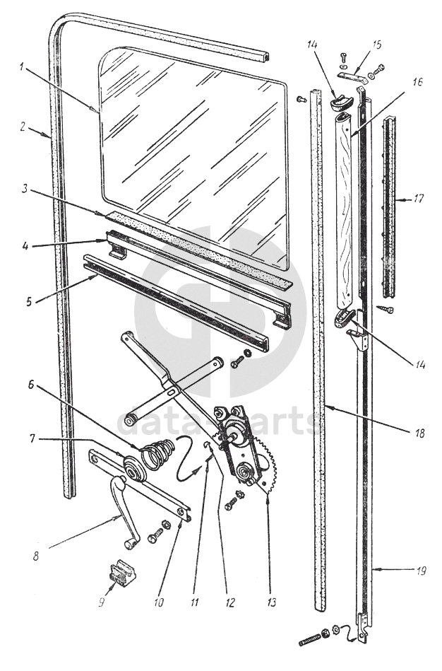 Кулиса ролика стеклоподъемника двери нижняя в сборе