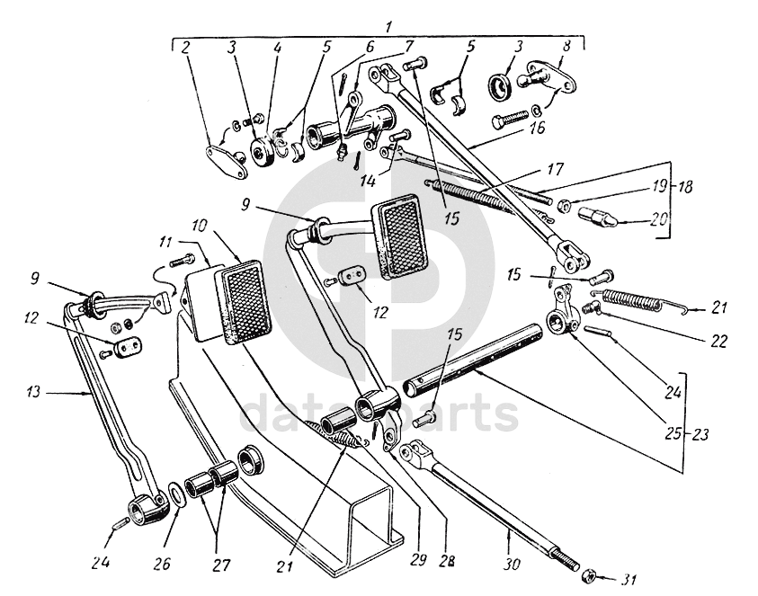 Привод выключения сцепления. Тормозная педаль и привод М20 Победа