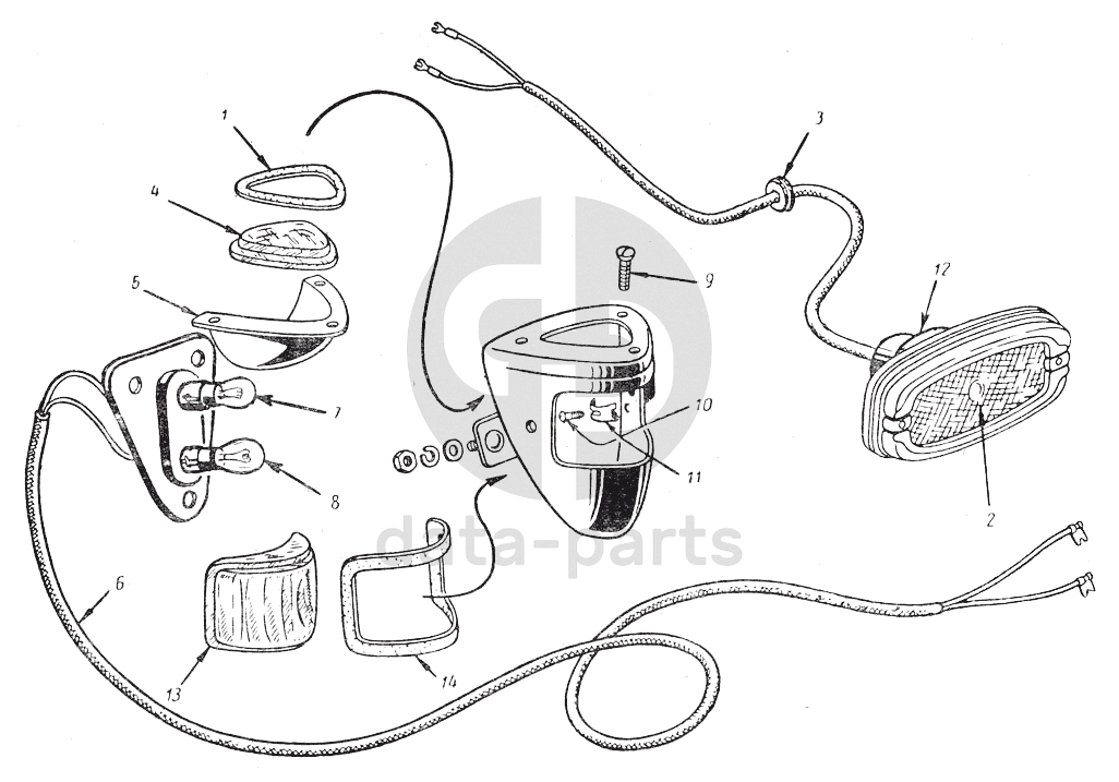 Фонарь задний. Освещение заднего номерного знака М20 Победа