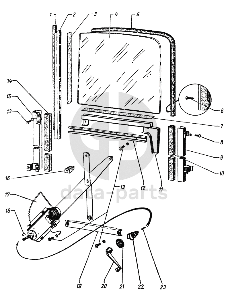 Винт М6х1х14 крепления обоймы заднего желобка опускного стекла передней двери