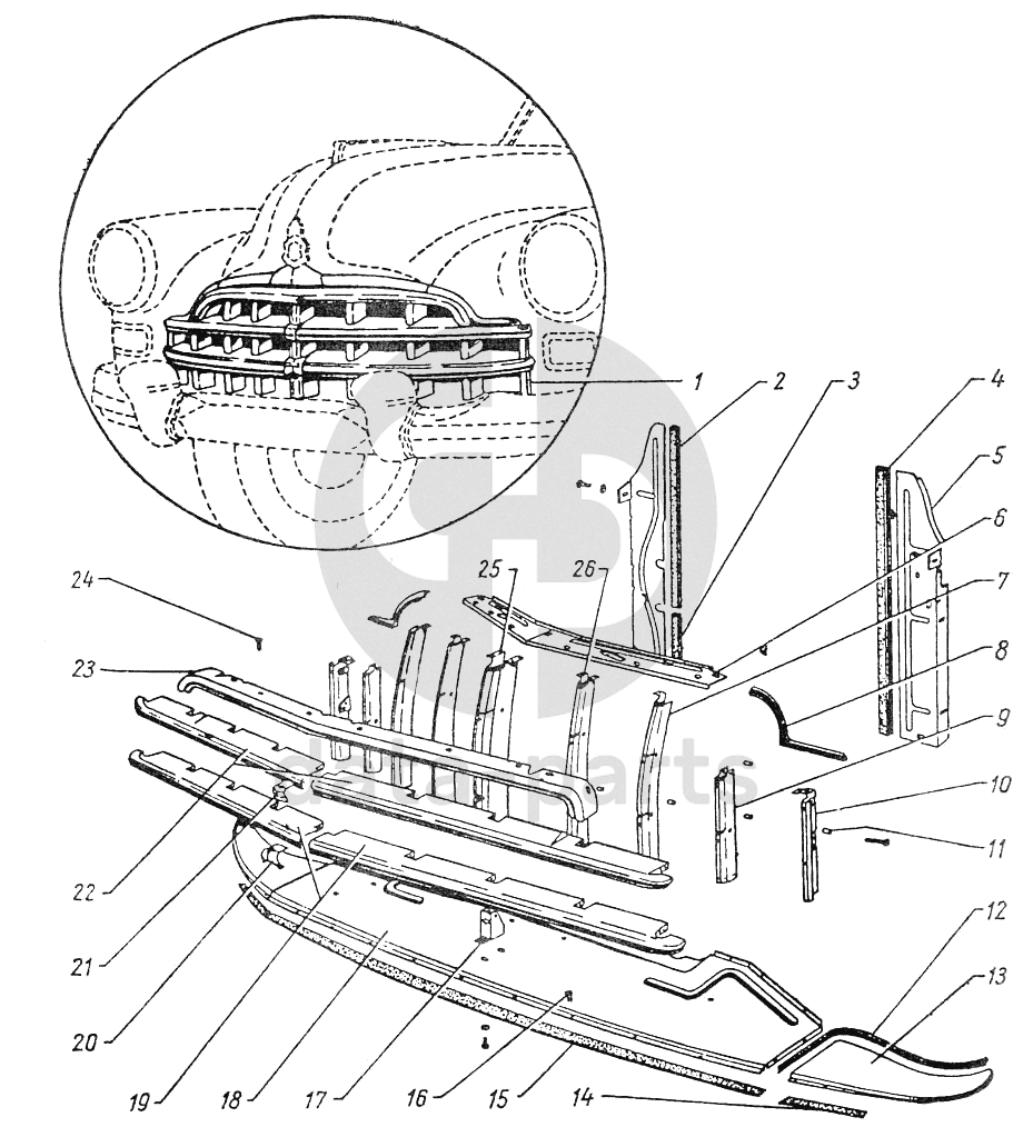 Облицовка радиатора ГАЗ-12 (ЗИМ)