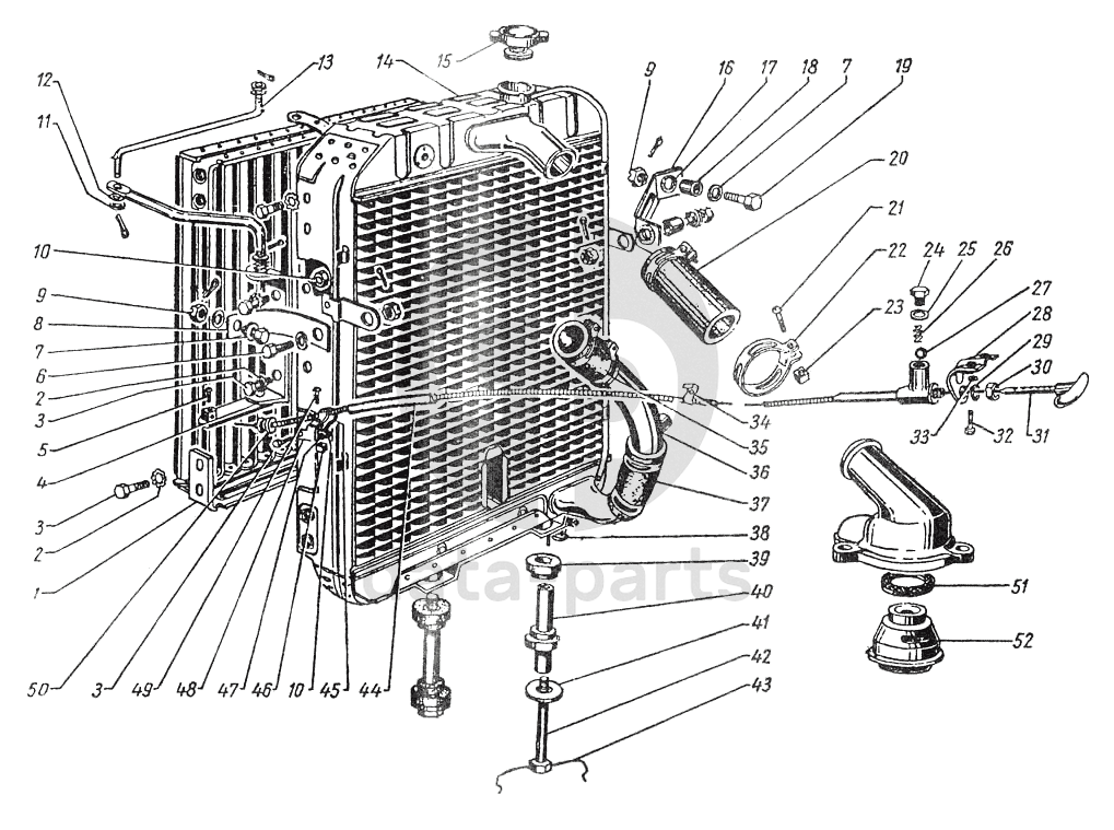 Болт 1М8х1х20 правой пластины бокового крепления радиатора