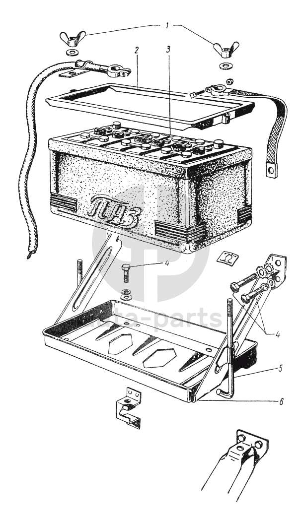 Основание крепления аккумуляторной батареи с кронштейнами в сборе