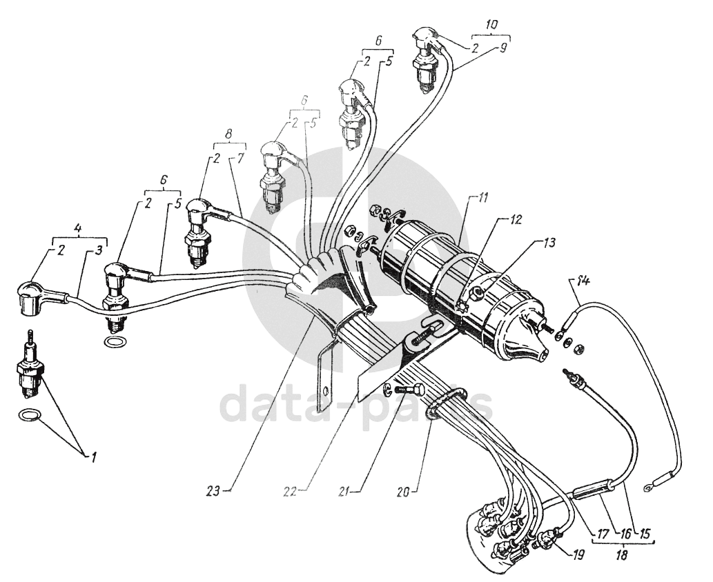 Провод от распределителя к свечам второго, четвертого и пятого цилиндров двигателя с гасящим сопротивлением в сборе