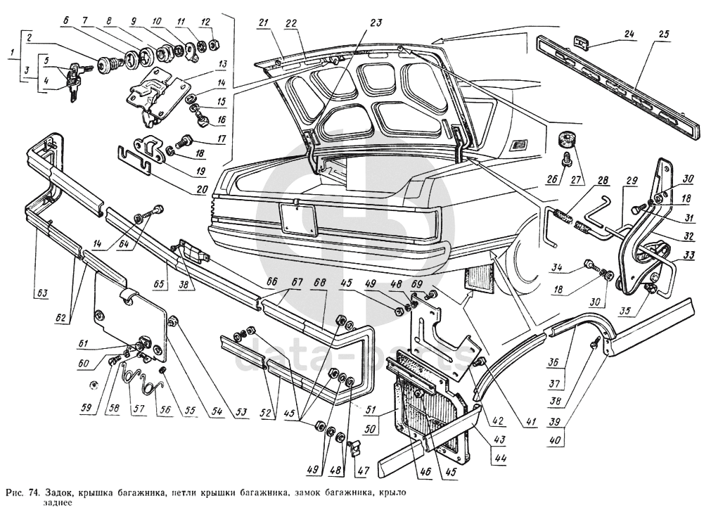 Задок, крышка багажника, петли крышки багажника, замок багажника, крыло заднее ГАЗ-14 (Чайка)