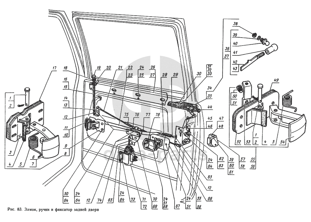 Замок, ручки и фиксатор задней двери ГАЗ-14 (Чайка)