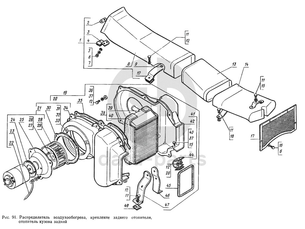 Распределитель воздухообогрева, крепление заднего отопителя, отопитель кузова задний ГАЗ-14 (Чайка)