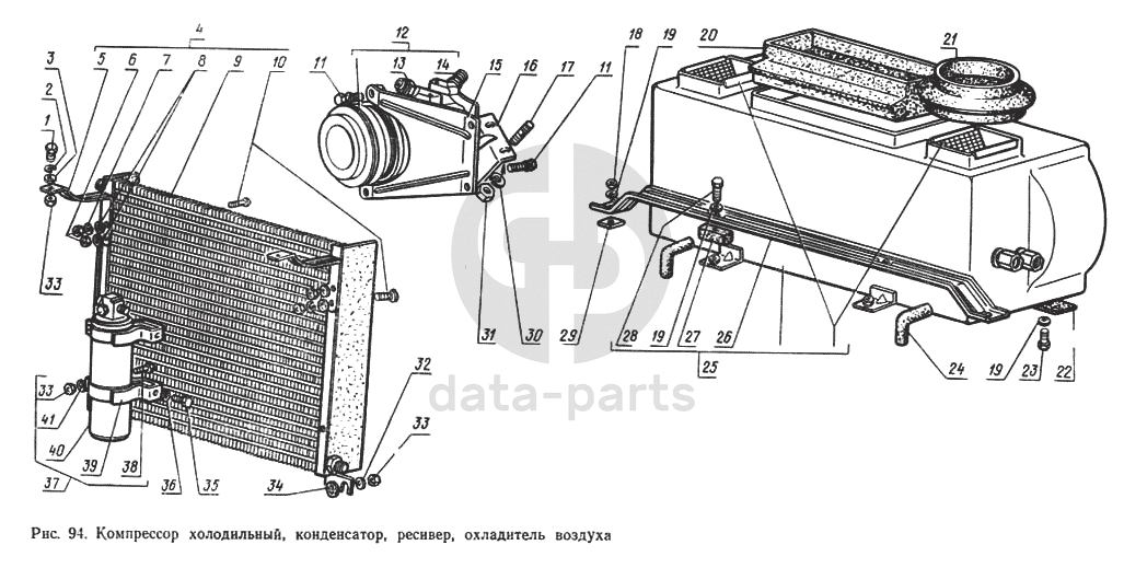 Компрессор холодильный, конденсатор, ресивер, охладитель воздуха ГАЗ-14 (Чайка)