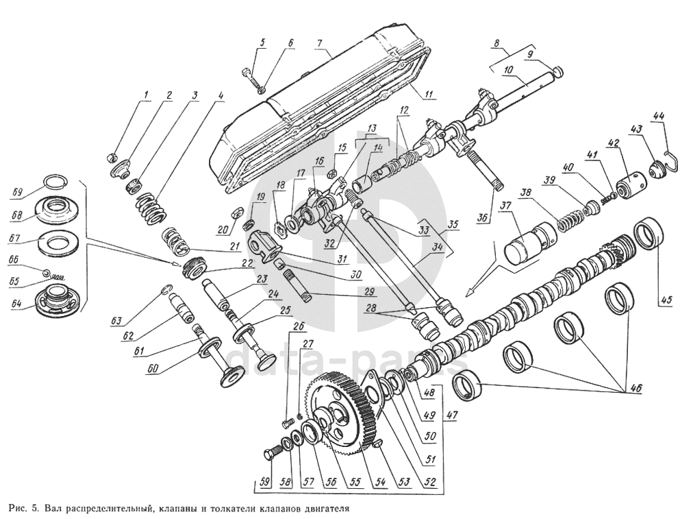Вал распределительный, клапаны и толкатели клапанов двигателя ГАЗ-14 (Чайка)