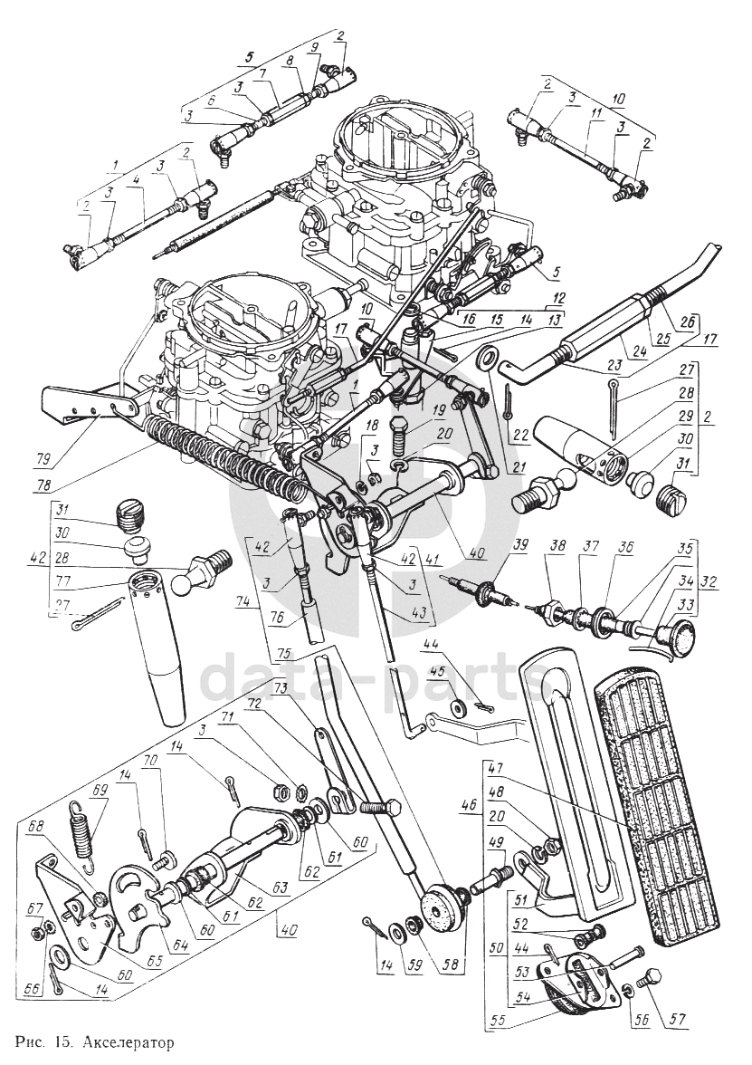 Тяга рычага дроссельной заслонки правого карбюратора в сборе