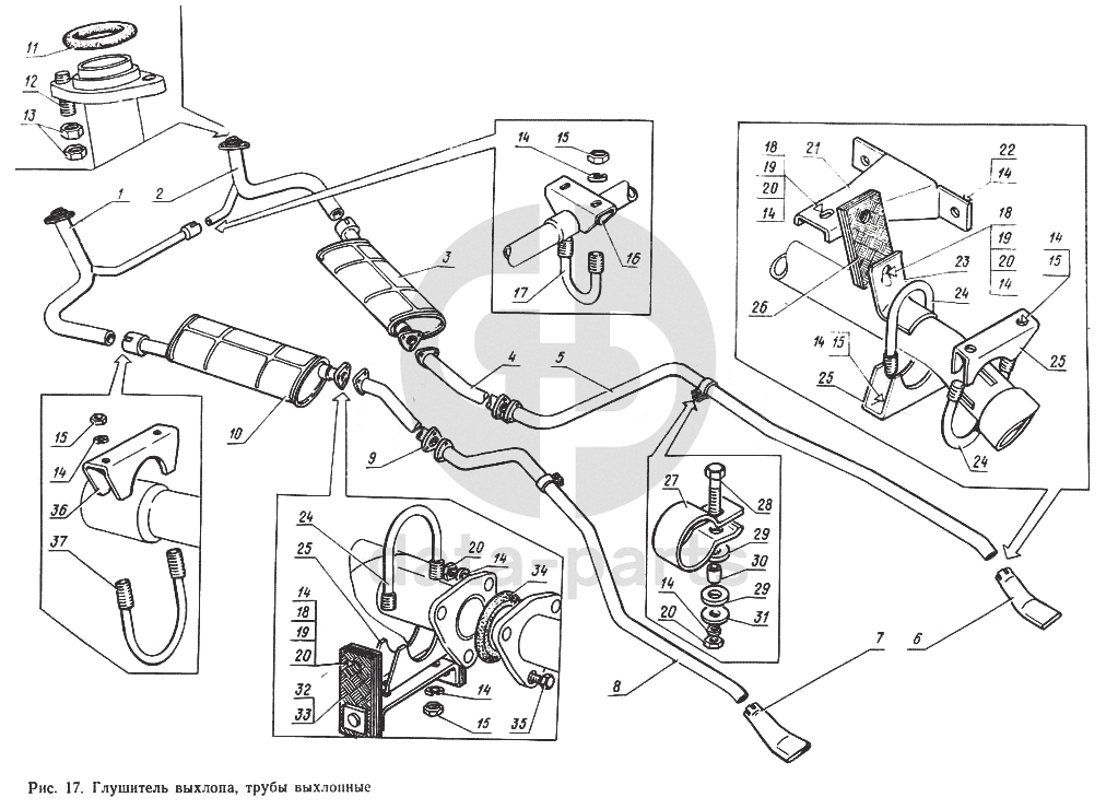 Глушитель выхлопа, трубы выхлопные ГАЗ-14 (Чайка)
