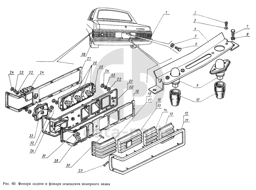 Фонари задние и фонари освещения номерного знака ГАЗ-14 (Чайка)