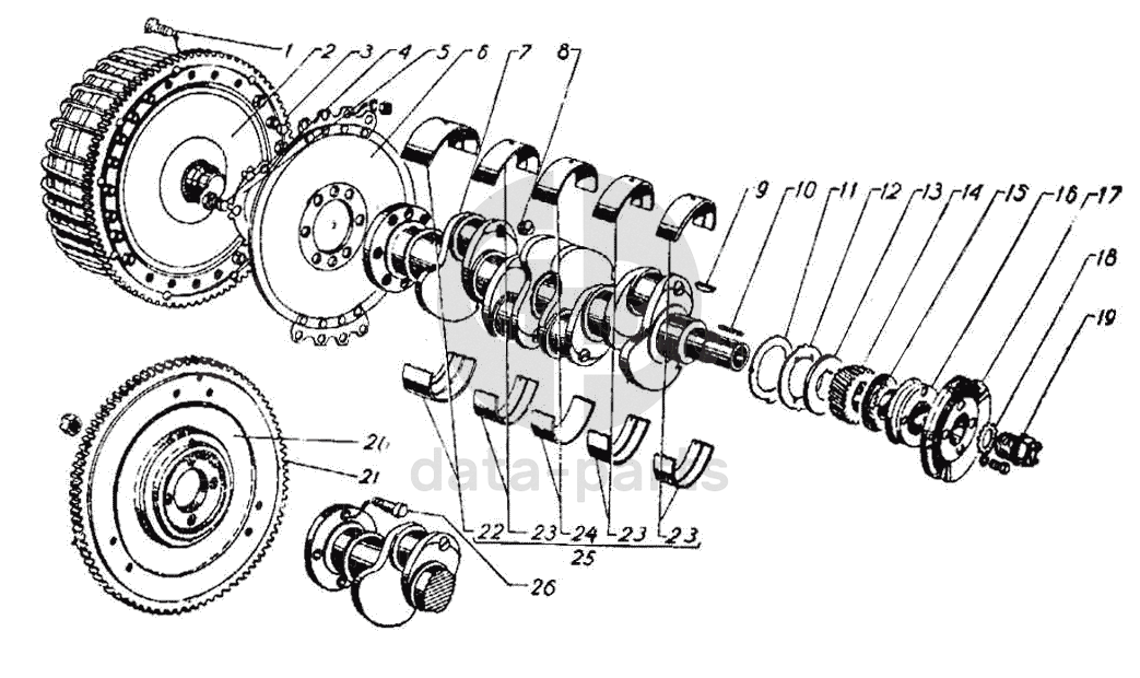 Вкладыши переднего и промежуточных подшипников коленчатого вала диаметром 62,50 мм