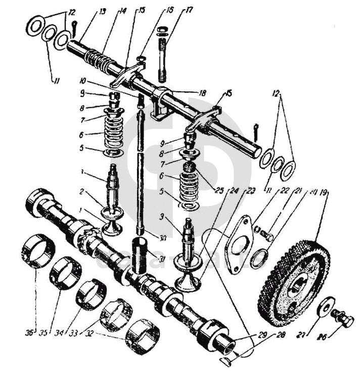 Распределительный вал, клапаны и толкатели ГАЗ-21