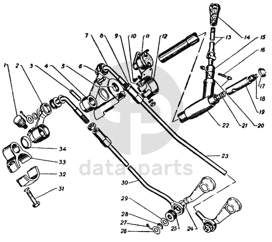 Тяга 1-ой передачи и заднего хода с противошумной подушкой и стержнем в сборе