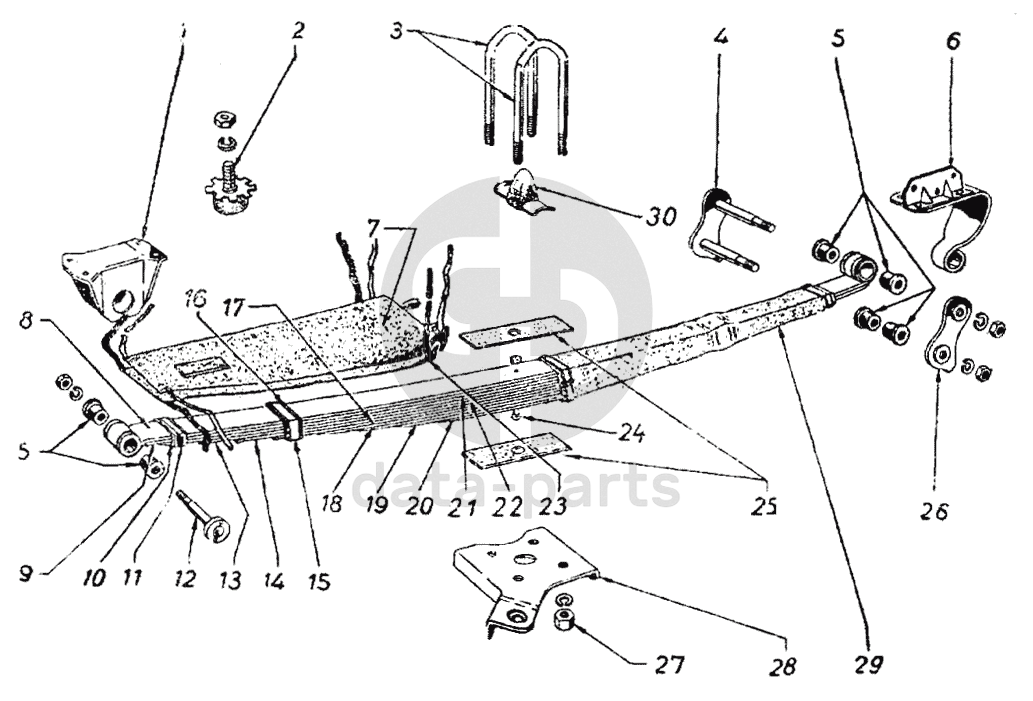 Палец переднего кронштейна задней рессоры с шайбой в сборе