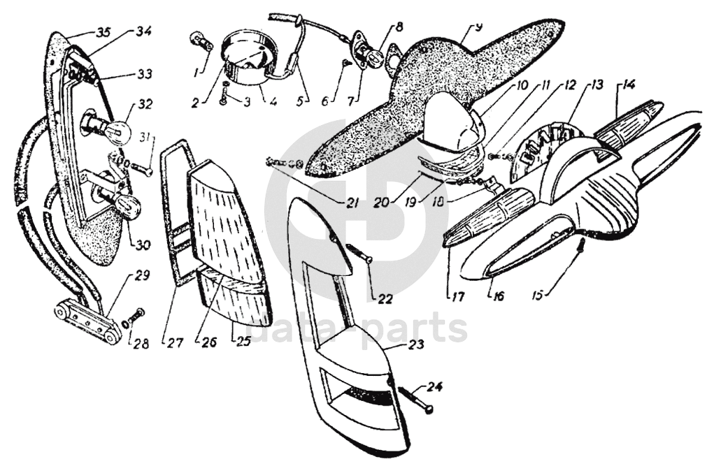 Задний фонарь, фонарь освещения багажника и фонарь освещения номерного знака ГАЗ-21