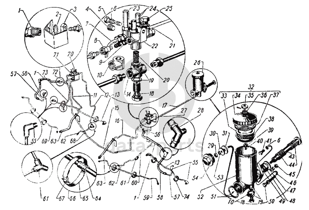Трубка от дозатора к тройнику оси нижних рычагов - правая в сборе