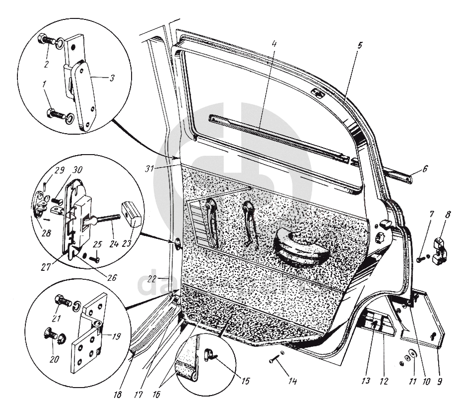 Задняя дверь (для моделей ГАЗ-21Р, ГАЗ-21С, ГАЗ-21Н и ГАЗ-21Т) ГАЗ-21