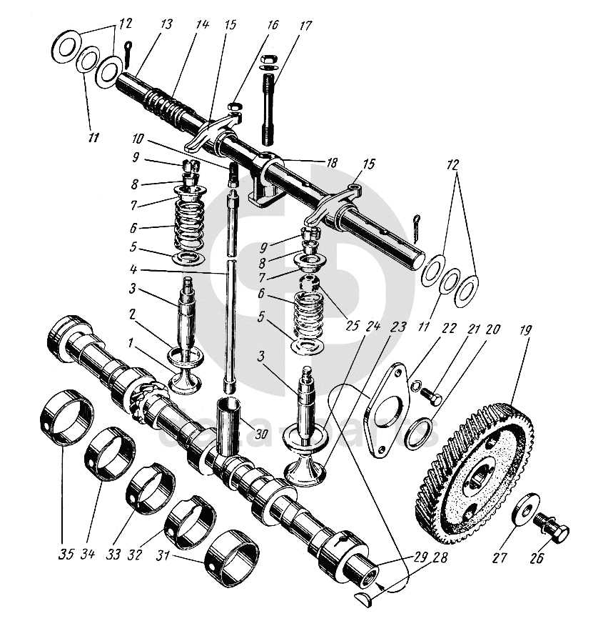 Распределительный вал, клапаны и толкатели ГАЗ-21