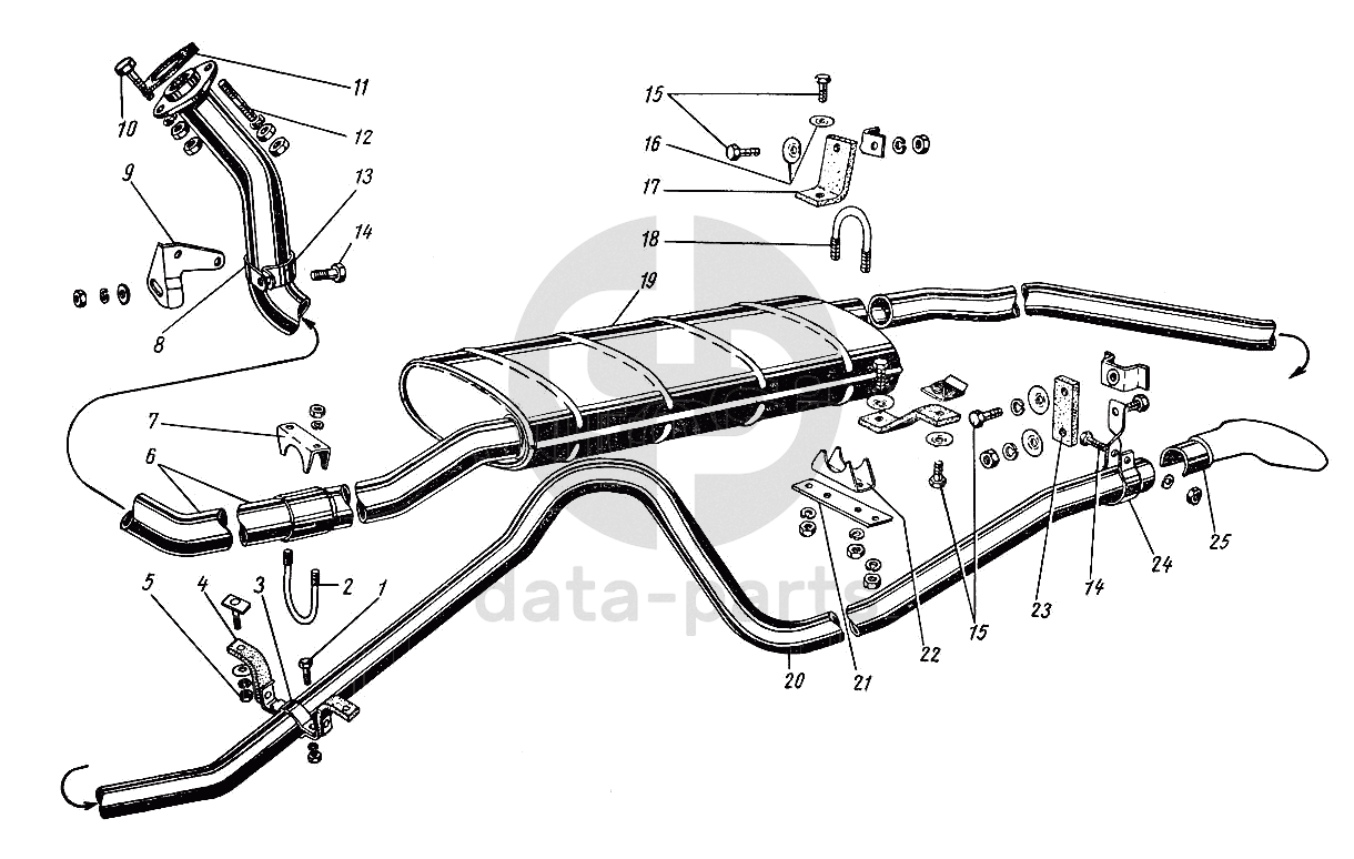 Кронштейн крепления выхлопного конца глушителя к полу кузова