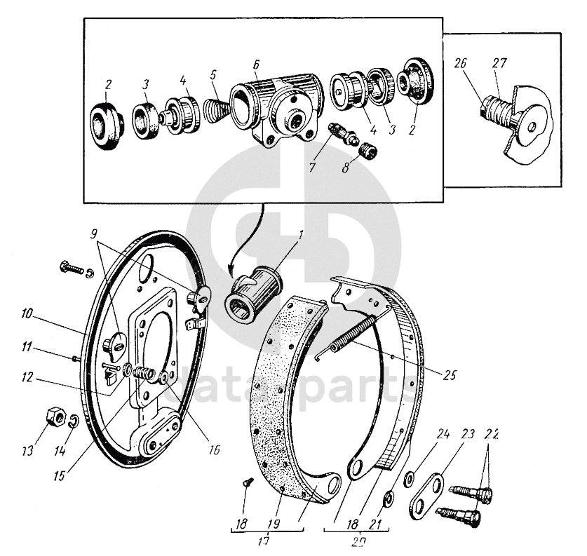 Колодка и фрикционная накладка тормоза в сборе задняя