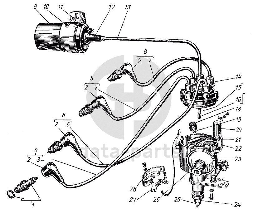 Катушка зажигания, запальные свечи и распределитель ГАЗ-21