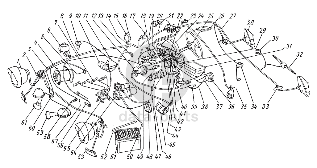 Схема электрооборудования (с правым расположением рулевого управления) ГАЗ-21