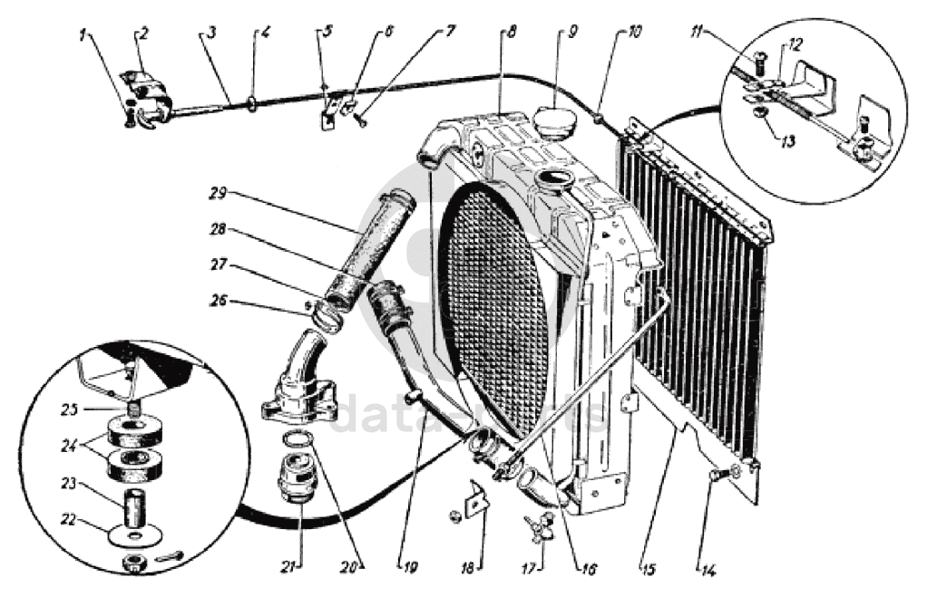 Зажим крепления оболочки тяги управления жалюзи радиатора