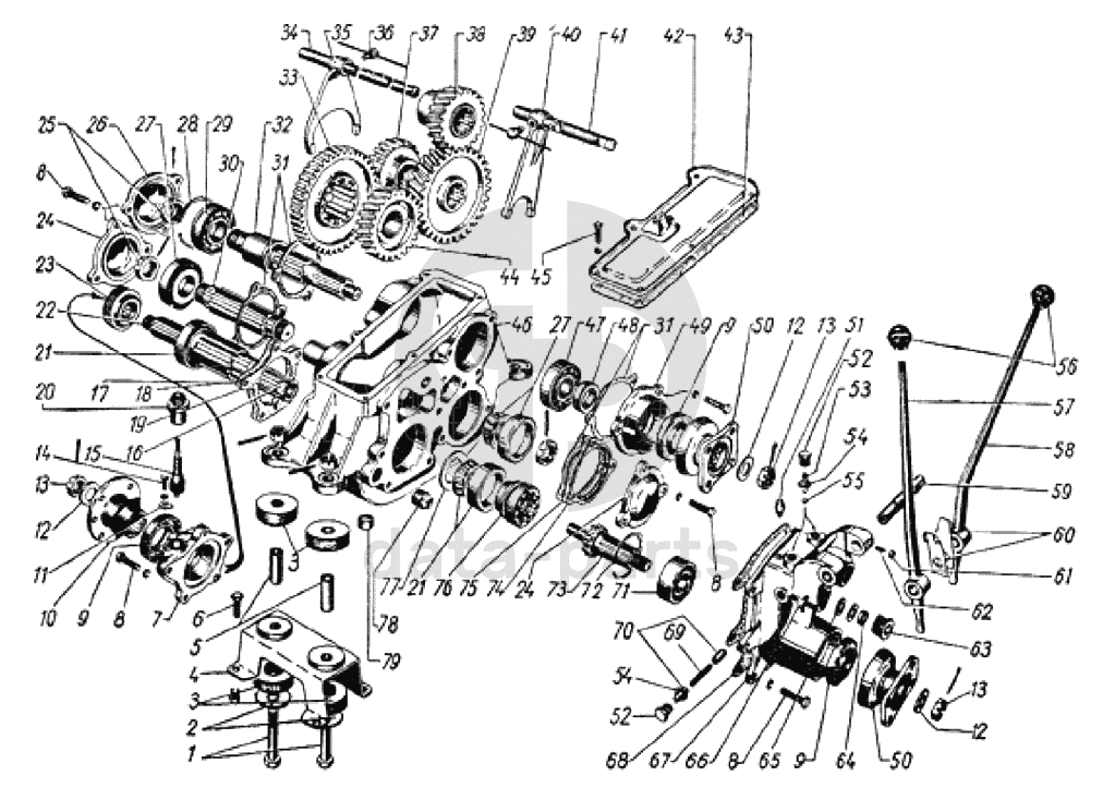 Картер штоков вилок переключения шестерен раздаточной коробки