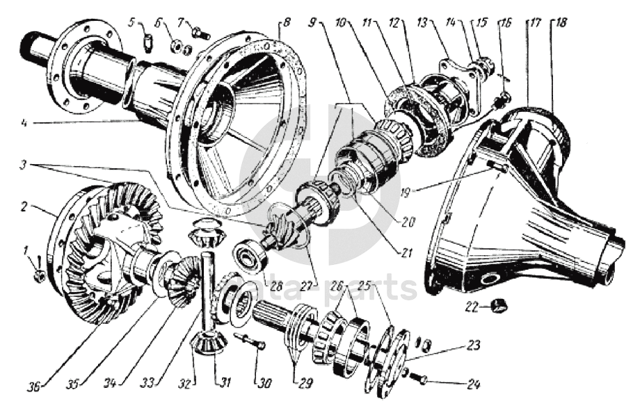 Ведущая и ведомая шестерни главной передачи (комплект после притирки), передаточное отношение 5,125:1