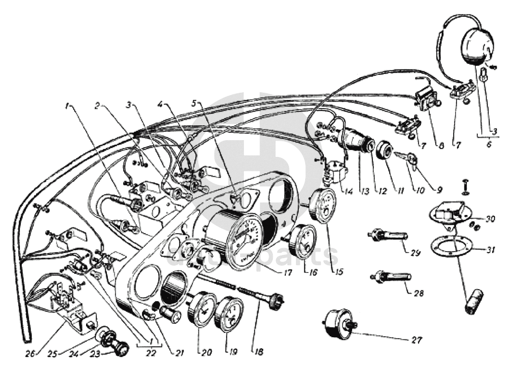 Фонарь контрольной лампы температуры воды в радиаторе в сборе типа ПД-20-Д