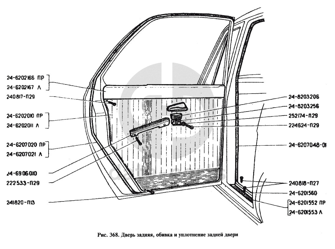 Дверь задняя, обивка и уплотнение задней двери ГАЗ-24
