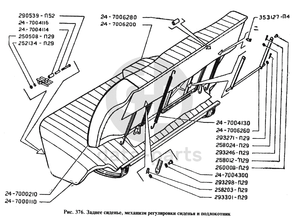 Заднее сиденье, механизм регулировки сиденья и подлокотник ГАЗ-24