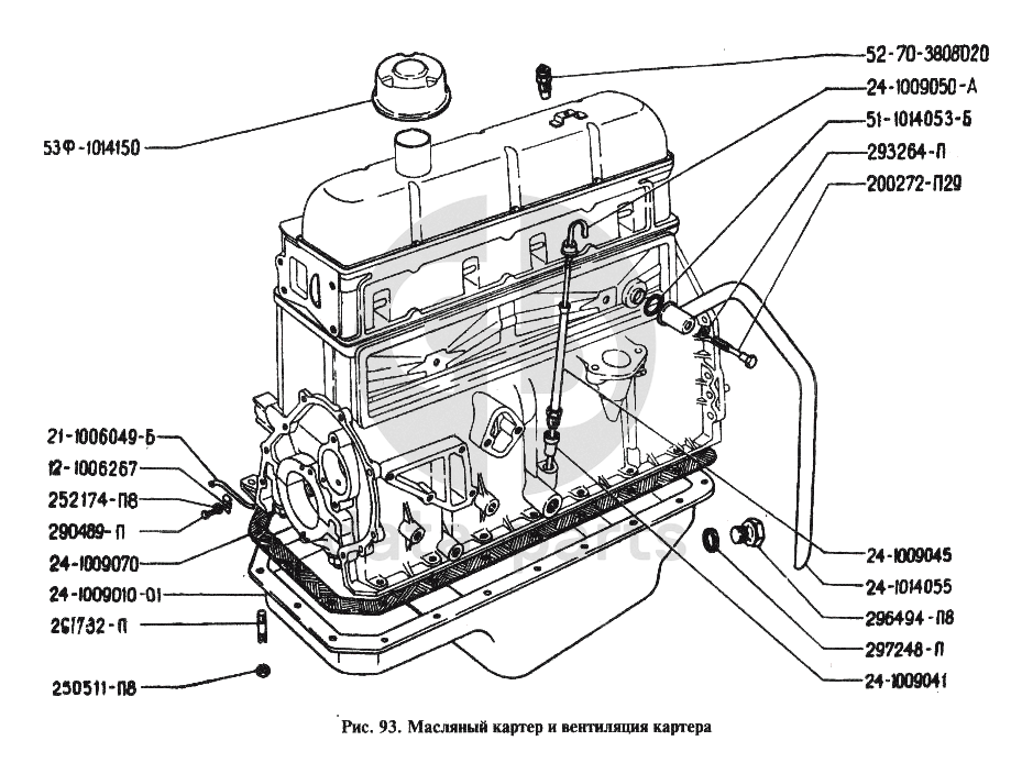 Масляный картер и вентиляция картера ГАЗ-24