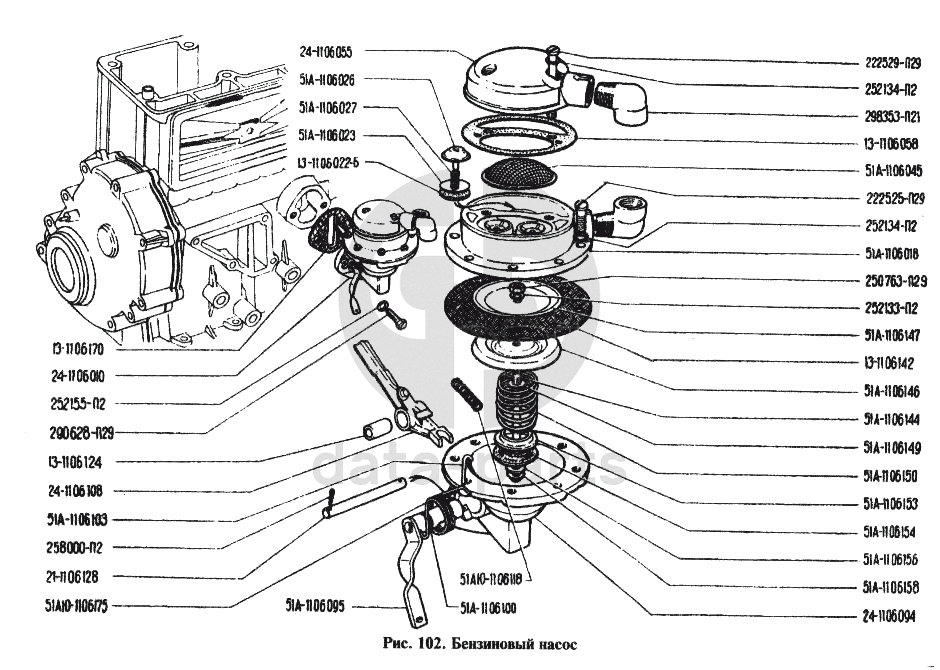 Валик ручного привода бензинового насоса с рычагом в сборе