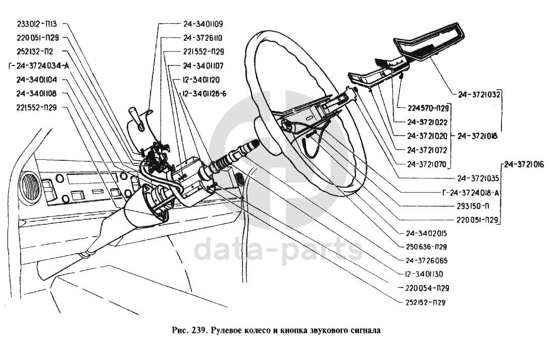 Рулевое колесо и кнопка звукового сигнала ГАЗ-24