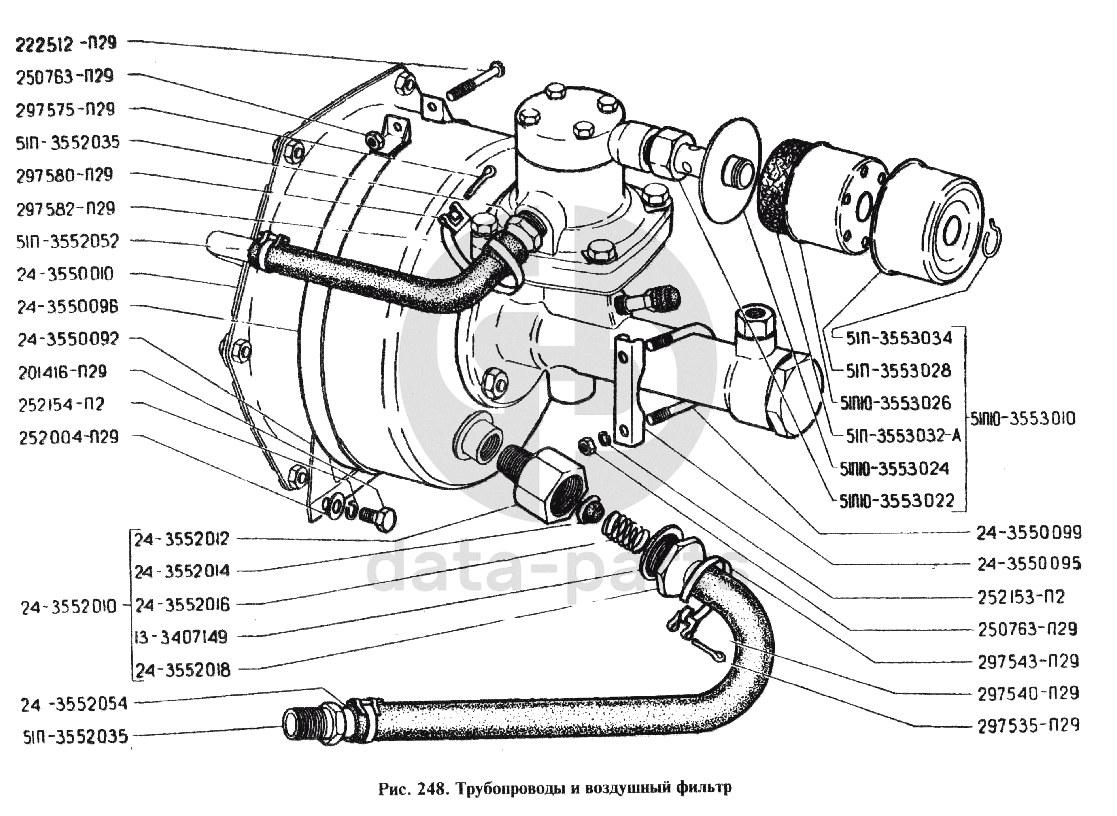 Трубопроводы и воздушный фильтр ГАЗ-24