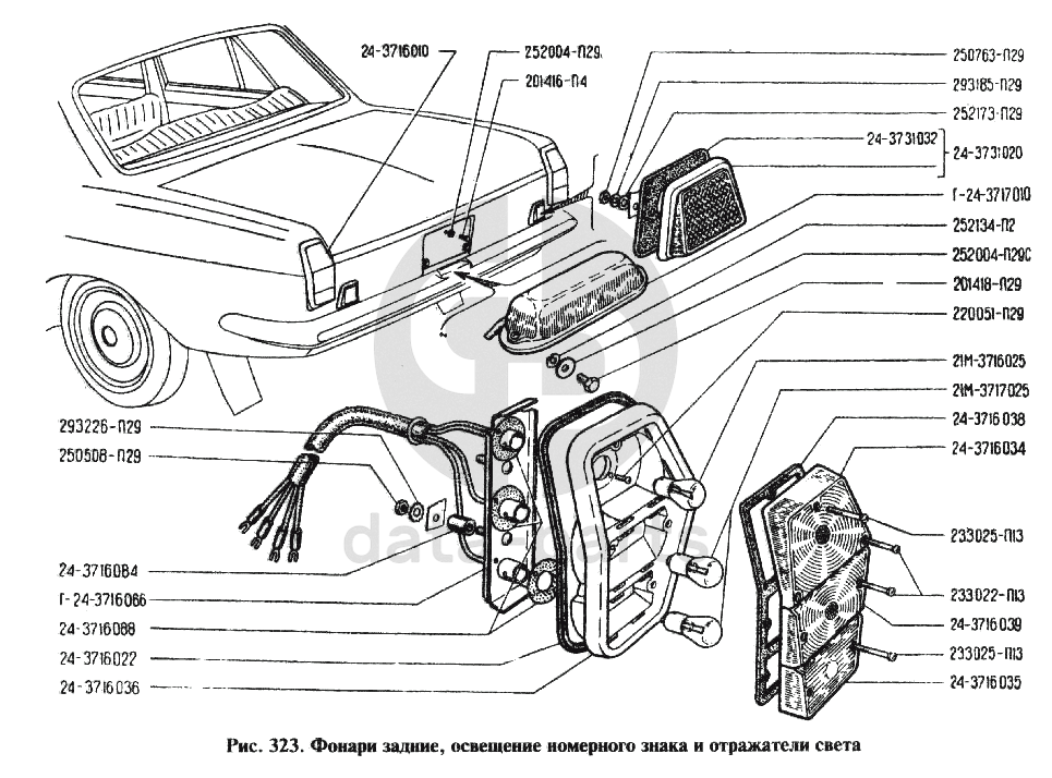 Фонари задние, освещение номерного знака и отражатели света ГАЗ-24